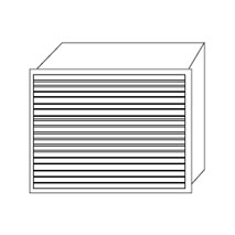 Fabricado en fierro negro de 0.8 mm. Aletas de aluminio de 0.5 mm. Con celosía de traspaso de aire en su frente,