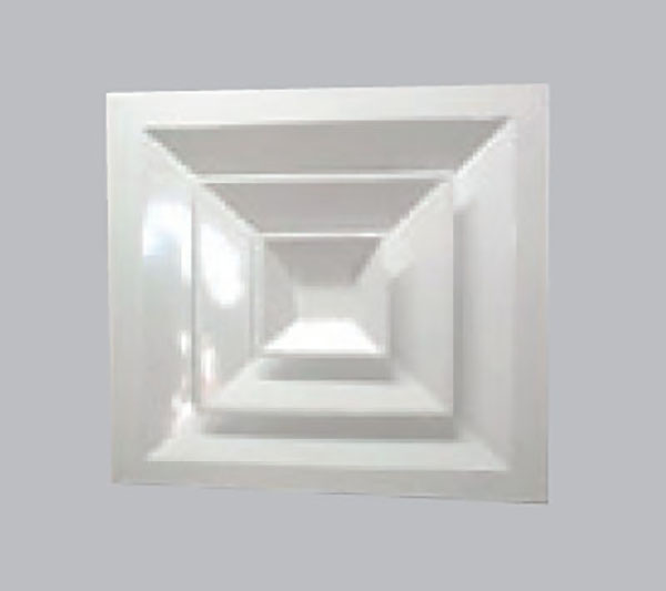 Parrilla fija (No desmontable), pintura electroestática color blanco, templador regulador de caudal de aletas opuestas.