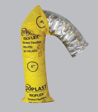 4” a 16”. Ducto ISOFLEX, aislado con manta de lana de vidrio de 25mm de espesor, densidad 16kg/m3, cubierto con una chaqueta con cinta de poliester metalizado con cinta de poliester transparente, usando adhesivo de color negro en base a agua, retardante a la llama y reforzada con filamento de fibra de vidrio (acabado aluminio brillante).