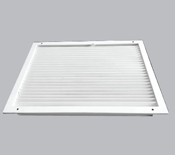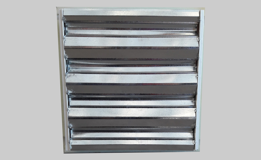 Fabricado en fierro galvanizado de 0.8 mm. de aletas fijas inclinadas a 35ª, con templador regulador de caudal de aletas opuestas. Pintura de terminación electrostática color blanco.