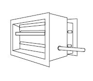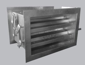 Fabricado en plancha galvanizada de 0,8 mm. Con fusible térmico a 73,9°C (165° F). Este templador tiene la particularidad de ser una mezcla entre dos templadores, un cortafuego y un anti humo. Con base para instalar actuador. (No incluye actuador).